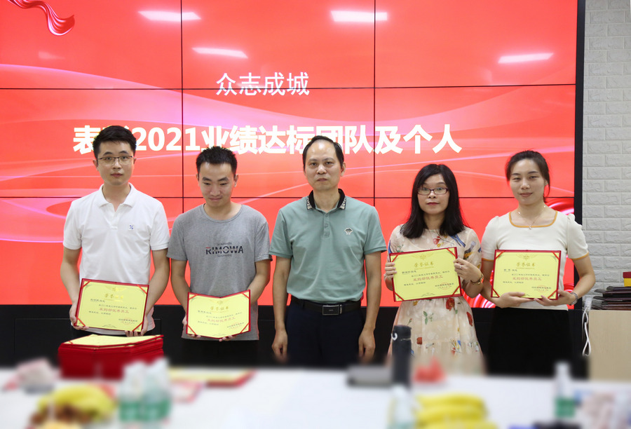 表彰会上,万董事长及其他高管对业绩达标的团队及个人进行了表彰和奖励。研发团队推出的开云(中国)官方在线登录防疫门磁报警器,安装简易,操作方便,深受街道和社区的好评,前不久,该产品斩获“科技抗疫卫士”奖。